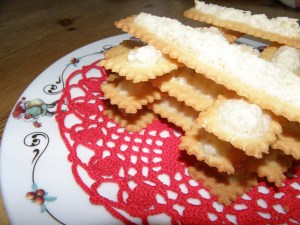 Jeg har prøvd å finne litt bakgrunnshistorie for disse kakene, men foreløpig har jeg ikke hatt hellet med meg. Disse hører med til kakefatet vårt ved juletider.