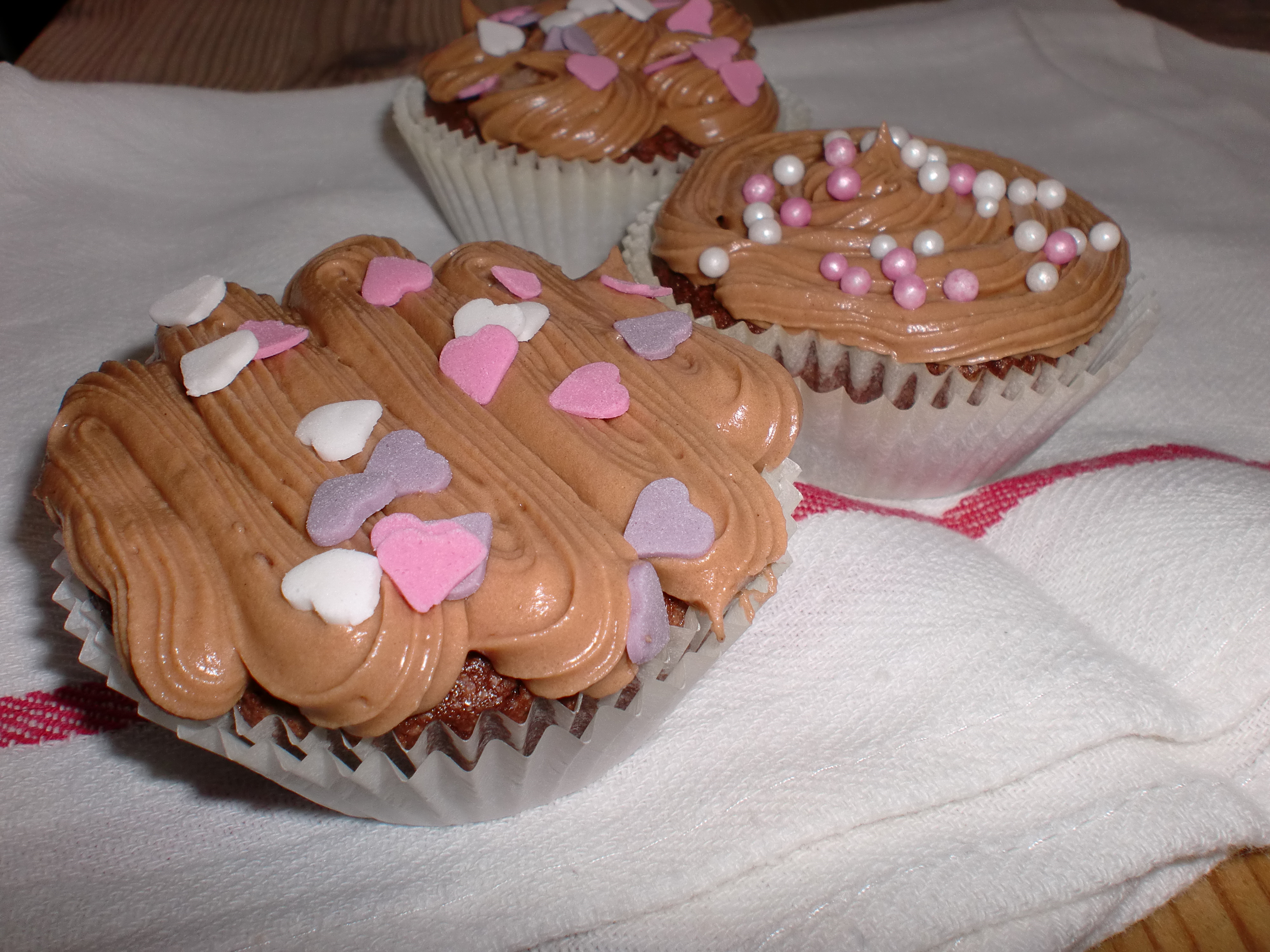 Jeg falt for fristelsen i dag da jeg kikket innom [kjøkkentjeneste] og leste innlegget om browniemuffins med kaffekrem. De så ustyrtelig gode ut, så da 15-åringen kom hjem fra skole satte han i gang bakingen. Han fikk seg en ekstra sykkeltur for å få kjøpt melis riktignok, men det tror jeg han syns turen var verdt. Vi brukte ikke opp all glasuren, så resten havner på brødskiva i kveld tenker jeg…