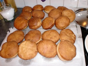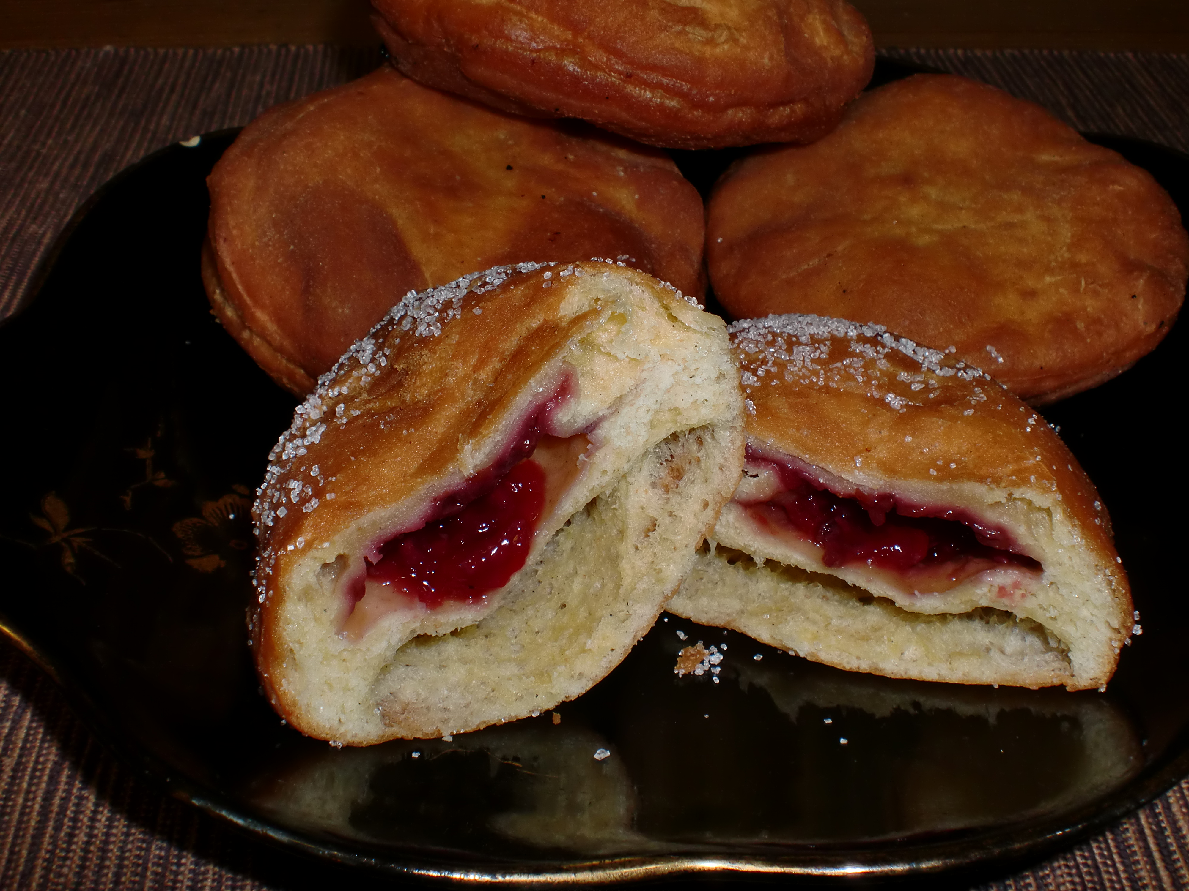 Vel, her rises ingen om morgenen Fastelavnssøndag. Det hender jeg husker å kjøpe fastelavnsris… Men det bakes som regel boller, og da Berlinerboller som fylles med vaniljekrem og bringebærsyltetøy. Som regel står mannen i huset for bakingen, mens jeg er ansvarlig for fettgryta…