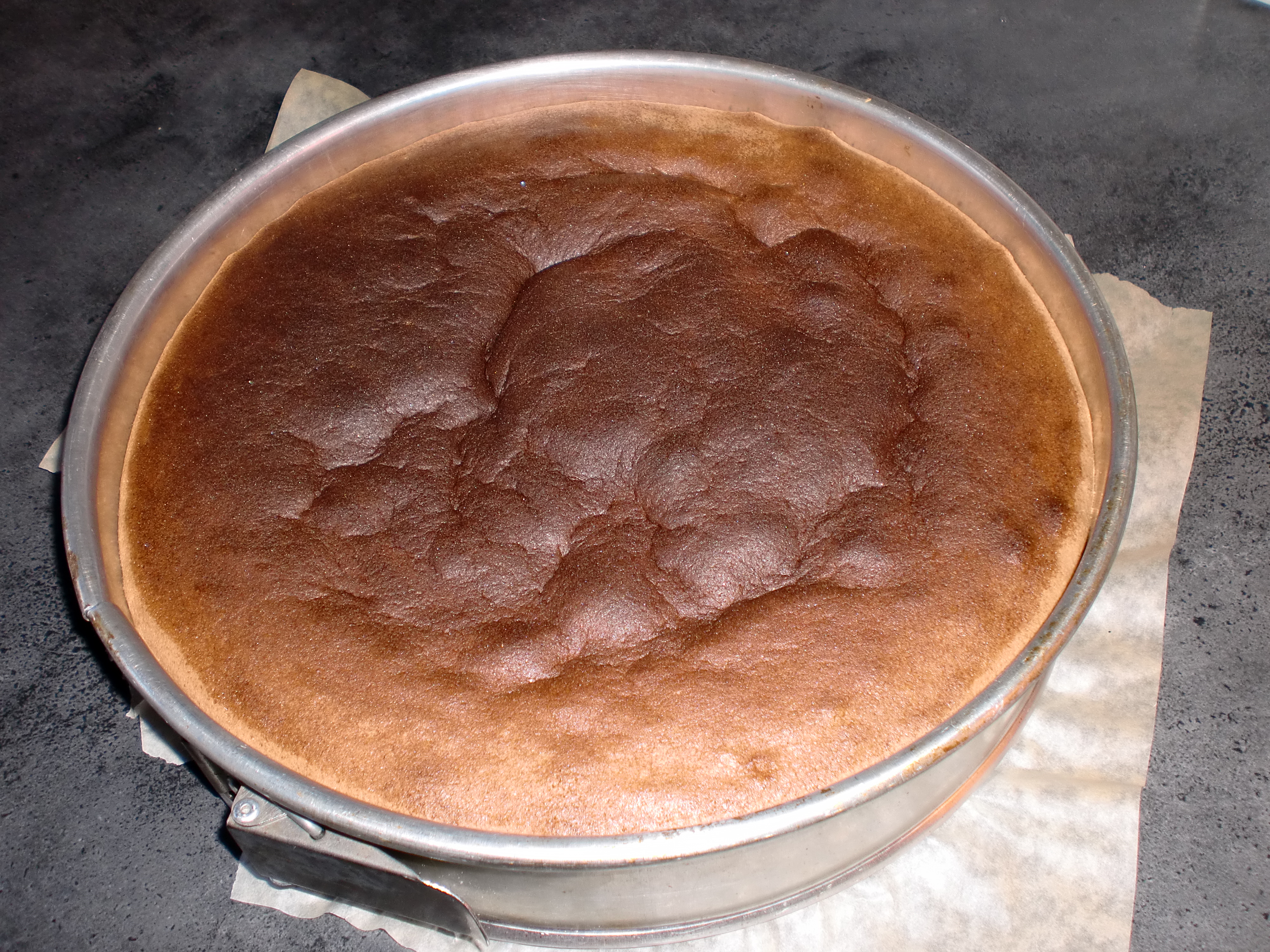 Pisk tykk eggedosis av egg og sukker. Bland det tørre og sikt det i eggedosisen. Løft det forsiktig inn i eggedosisen. Ha røren i en springform med løs bunn, hvor du har klemt fast bakepapir i bunnen. Ikke smør sidene på formen, da holder sukkerbrødet bedre på fasongen under steking.