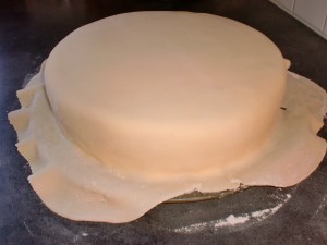 Skal du lage marsipankake, kjevler du ut marsipan litt større enn selve kaken. Ikke kjevle den ut på melis, da blir den bare klissete. Bruk siktet spelt (eller hvetemel) og kost av overflødig mel med en bakepensel før du legger den over kaken. Stryk forsiktig ut luftlommer og klem marsipanen forsiktig inntil sidene. Skjær av overflødig marsipan.