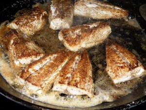 Smelt smør i god og varm stekepanne og legg fisken med skinnsiden opp. Stekes til den har en fin stekeskorpe før den snus og stekes på andre siden.