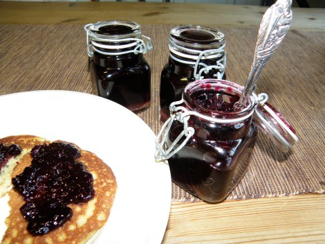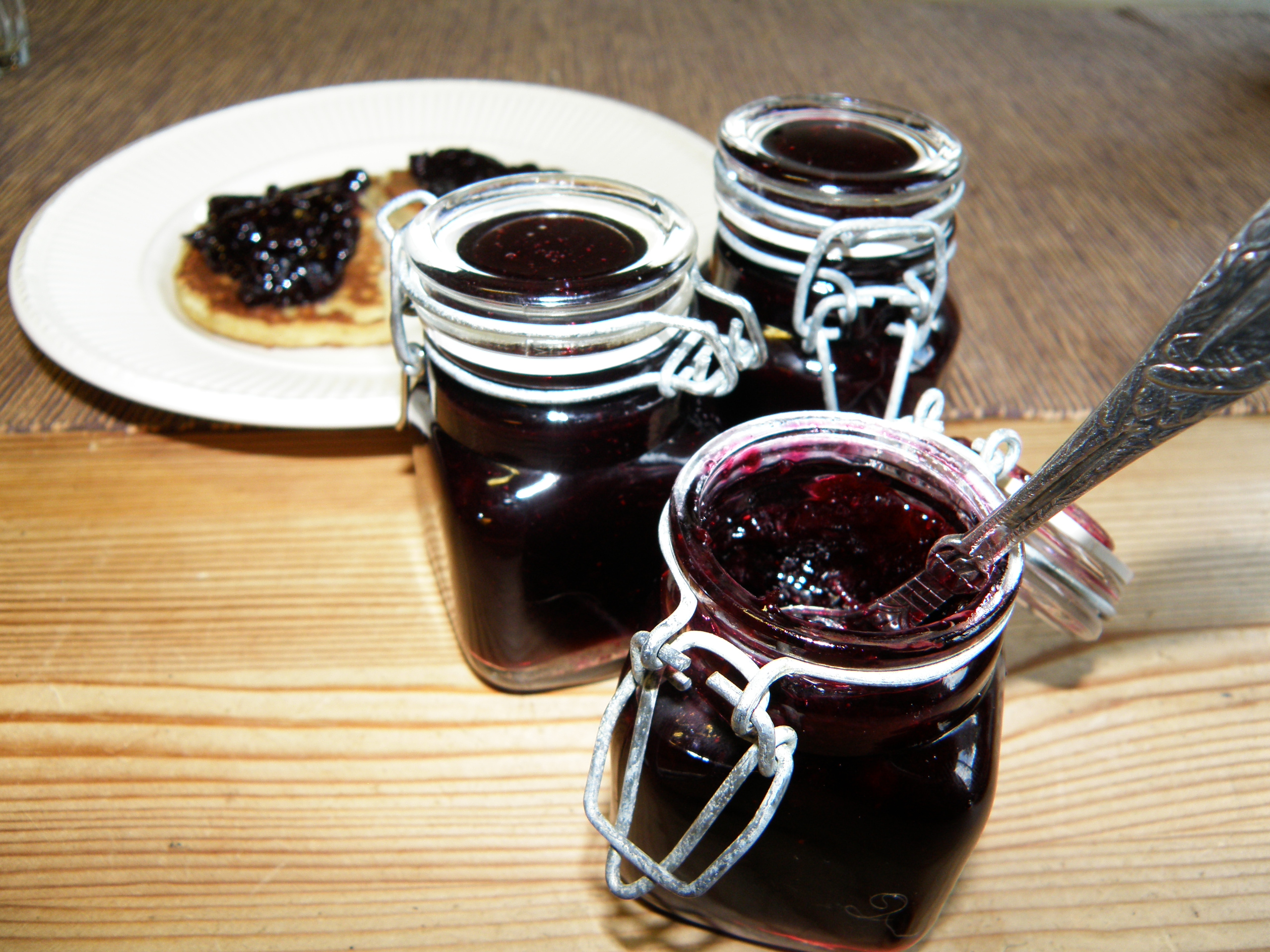 Litt spennende å kombinere forskjellige smaker, selv om ikke alt alltid er like vellykket. De siste krampetrekningene fra blåbærbuskene ga gode 300 gram med blåbær, og siden jeg likevel gikk forbi peppermynteplanten ploppet ideen om å kombinere de to i et syltetøy.