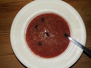 Serveres varm eller lunken. Suppen gjør underverker for en sår hals. Og om du siler den, er den ypperlig ved diaré.