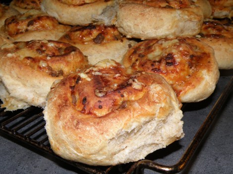 Av og til kan det være greit å bake opp litt forskjellig for å ha i fryseren. Pizzaboller er greit å ta til som skolemat, de tiner fram til lunsjtider. Disse pizzabollene er de samme som lages på en av barneskolene her i byen, min svigerinne er bakemester og lærer. Og det hender hun skjemmer bort elevene sine med et eller annet bakverk.