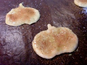 Kjevle ut rester av paideigen og lag figurer til pynt på paien. Stikk ut stjerner eller andre figurer. Jeg prøvde meg på små gresskar… Pensle med sammenpisket egg, strø på sukker og kanel og stek dem fint gyldne i ca 5 minutter.