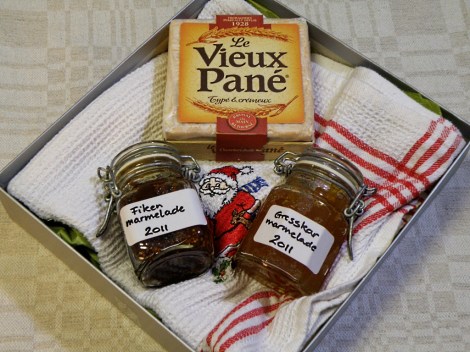 Nå er tiden kommet for å begynne å planlegge spiselige julegaver. Jeg har flere år på rad laget forskjellige geleer og syltetøy og brukt som julegaver. Her er gresskarmarmelade og fikenmarmelade som er like godt på brødskiva som til ostefatet. Pakket sammen med et fint julehåndkle og en god ost, blir det en fin julegave.