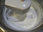 Pisk eggehvitene helt stive. Tilsett melis og vanilje litt av gangen og pisk til du har en seig masse. Vend inn kokosen.