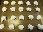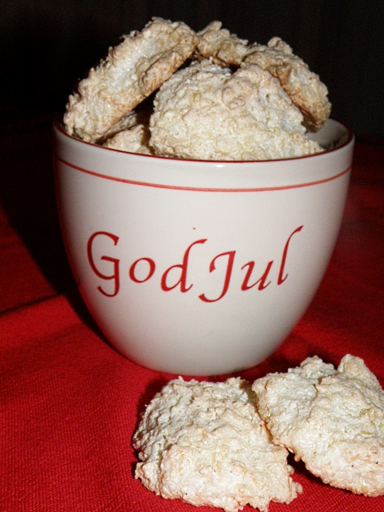 Sett massen med skje på et kledt stekebrett. Stek kokosmakronene på 170 grader i 10-15 minutter. Oppbevares i tett boks og kan gjerne fryses for å beholde mykheten i midten. Eller for å forhindre at de forsvinner før jul…