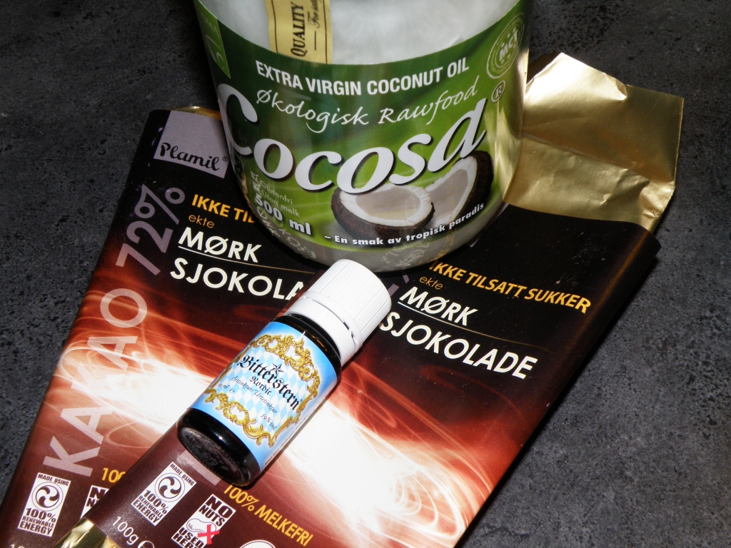 Smelt sjokolade og Cocosa over vannbad. Ha i Bitterstern.