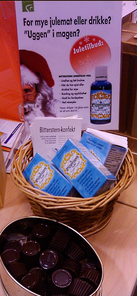 En annen måte å få i seg bitterstoffer på, er å kamuflere dem inn i en smakfull konfekt. Det gjøres ganske enkelt ved å tilsette urtetinkturen Bitterstern i smeltet sjokolade. Denne tinkturen har sine røtter tilbake til en såkalt klok kone ved navn Hildegard av Bingen som levde i Tyskland på begynnelsen av 1100-tallet.