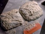 Ferdig hevet deig ble veltet over på et bakepapir jeg hadde