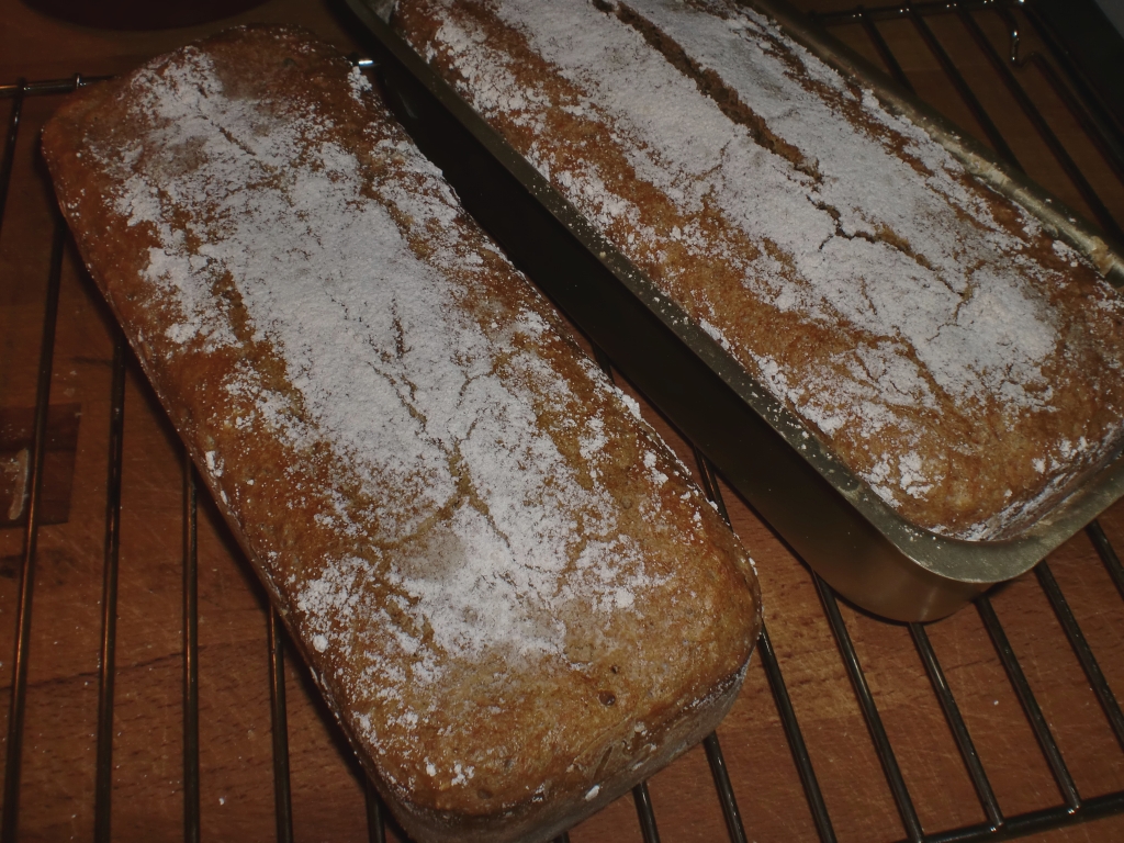 Brødene ble satt på rist til avkjøling, men de første skivene ble skåret nesten umiddelbart. Et saftig og godt brød, og det ble ikke tørt slik speltbrød har en tendens til å bli…