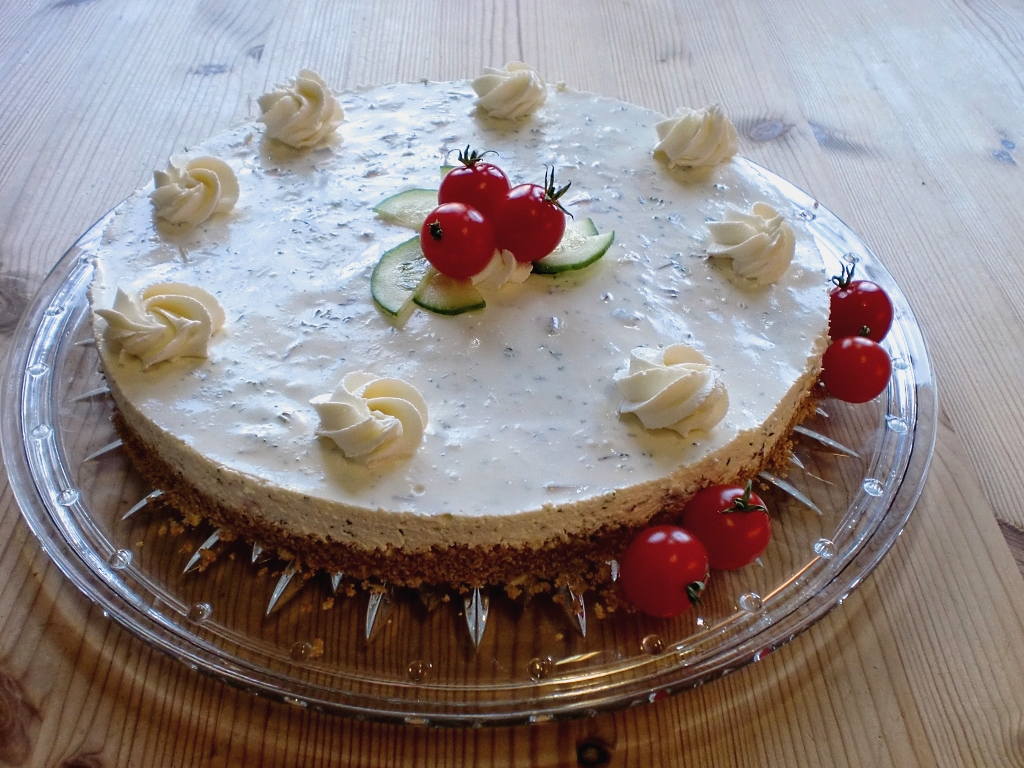 Nei du leste ikke feil. Det går ypperlig an å lage en salt ostekake. En spennende variant til koldtbordet. Utgangspunktet er en oppskrift jeg har funnet i Familien, men jeg har endret litegrann på den.