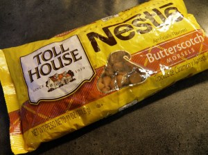• 1 pakke Nestlé Butterscotch morsels (eller 300 g hakket sjokolade)