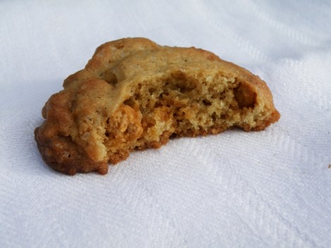 Jeg hadde liggende en pakke butterscotch morsels og tenkte at de måtte jo bli fine i cookies. Butterscotch = smørmalt, for de som husker dropsene som var for mange år siden…