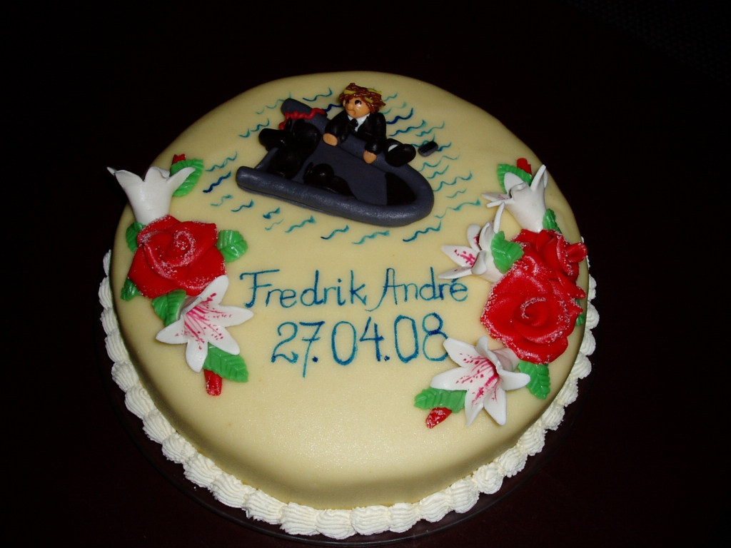 Det er konfirmasjonstid og det betyr kakebaking for mange. Her er kaken jeg lagde da min fetter var konfirmant i 2008.