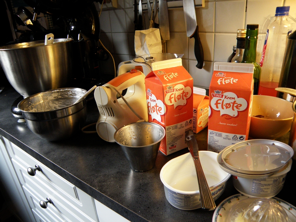 Jeg er en rotekopp av rang når jeg baker. Ting blir stablet overalt på benk og bord, så her tenkte jeg å vise litt hvordan det kan se ut…