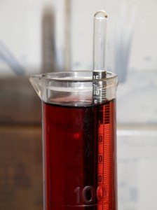 Det fine med denne skalaen er at man kan regne seg fram til ca sukkermengde som bør tilsettes, så slipper man å slumpe aldeles. 2,5 gram sukker pr gradstrek pr liter vin er et utgangspunkt. Dermed var det bare å regne ut hvor mye sukker som skulle tilsettes når jeg ville ha en oechsle i underkant av 10. Sukker ble tilsatt i en halvliter i første omgang til prøvesmaking.