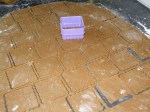 Stikk eller skjær ut kjeks. Stek dem på 200 grader midt i ovnen i 7-10 minutter. De skal egentlig være ganske lyse, mine ble mørke pga sirupen.
