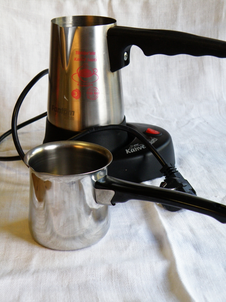 Gresk/tyrkisk kaffe lages i en briki, en liten kjele som kun rommer et par desiliter. Som vist på bildet finnes de også med samme prinsipp som en vannkoker.