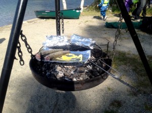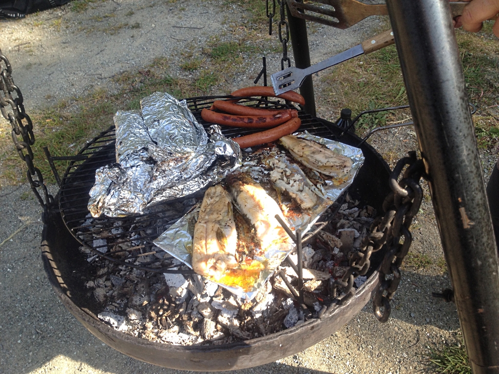 I forbindelse med en familiekveld i regi av Dalane Friluftsråd og EJFF, havnet min mann og jeg ved bålpannen med ørret og pølser. I tilfelle dårlig fangst, var det blitt behørig jukset på Espelid-vis slik at vi kunne stille med grillet fisk uansett. Men vi hadde også pølser i bakhånd, i tilfelle det var noen som ikke likte fisk..