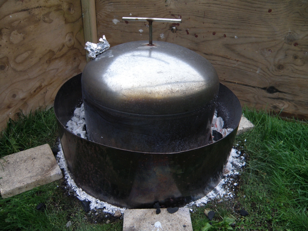 Å være gift med en Petter Smart kan gi seg utslag i mange rare ideer. Vi hadde begge sett et program på Discovery for en stund tilbake hvor amerikanske tømmerhuggere grillet kalkun under søppelspann. Dette måtte jo kunne gjøres her også.