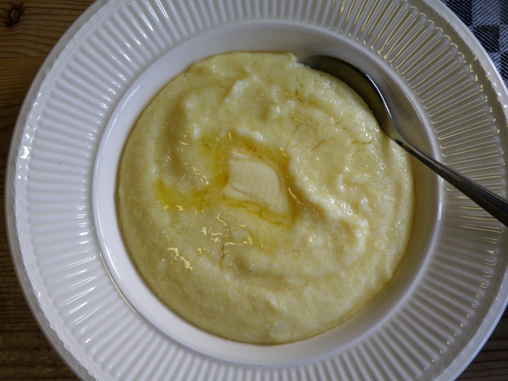 Jeg har ingen fancy ingredienser i denne grøten. Det er en helt enkel grøt kokt på polentagryn, som er laget av maiskjerner. Ypperlig erstatning for semule, som er laget av hvete.
