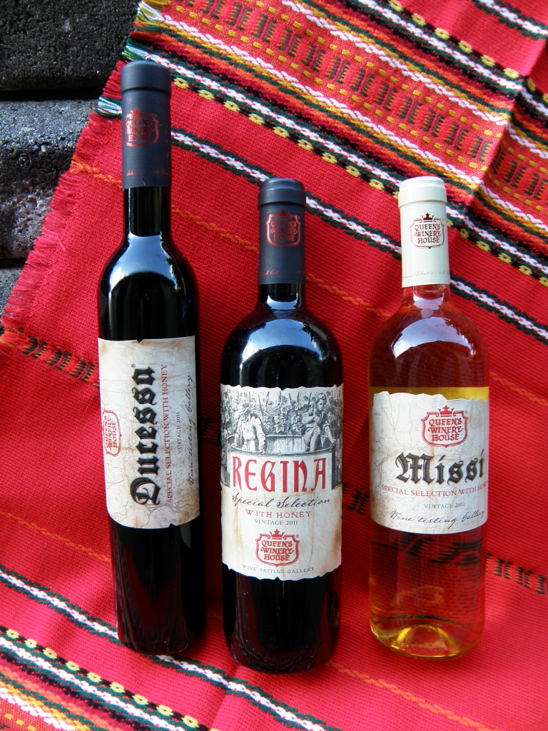 I år ble det litt ekslusiv vin fra Queens Winery i Balchik. Dette er viner som kun selges i dronning Marias sommerpalass og på flyplassen. Det spesielle med disse vinene er at det er smakssatte viner. Mange er skeptiske til denne typen viner, mens andre finner den interessant. Jeg er ingen vinkjenner, jeg kan godt finne på å kjøpe en vin fordi flasken eller etiketten ser spesiell ut. Disse vinene har jeg smakt i Winery’et så valget var enkelt.