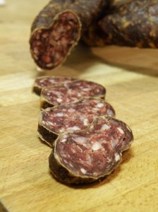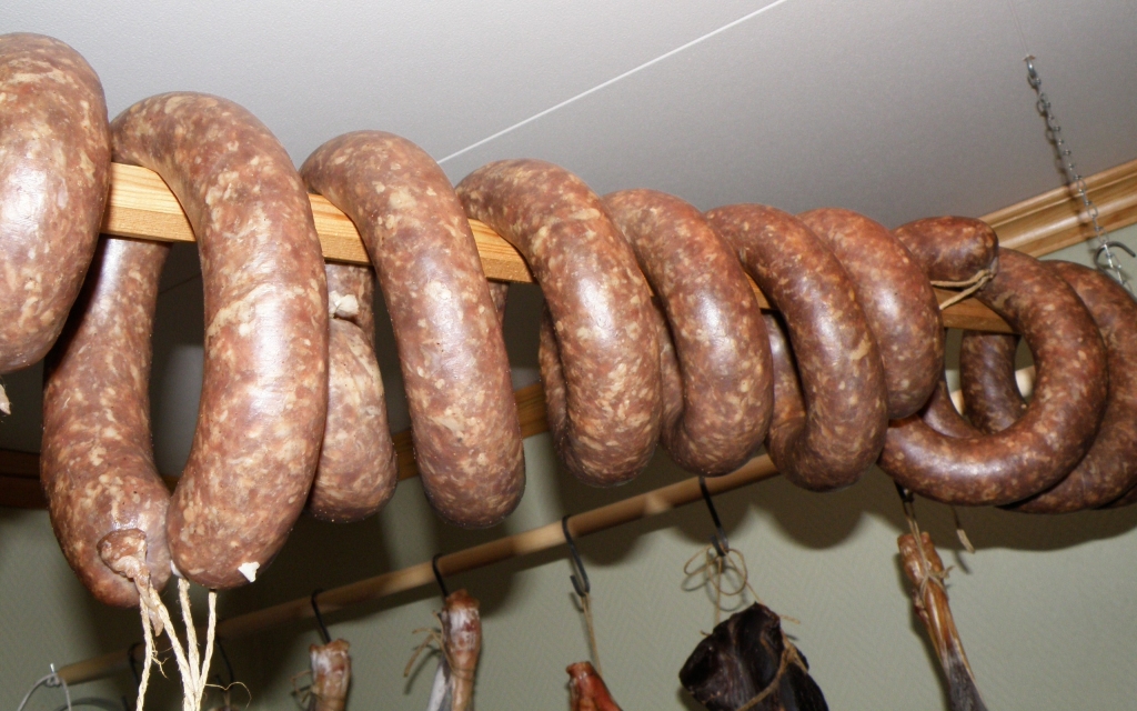 Den første spekepølsa har vi testsmakt for lenge siden – flere ganger.. Det er ikke store kveilen igjen. Men man kan jo forsvare seg med at man har gitt bort noen biter.