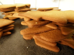Stikk ut figurer som legges på stekebrett og stekes på 175 grader i ca 8 minutter, eller til de er fint gyldne. La dem stå litt på brettet før du legger dem over på rist til avkjøling. Oppbevares i tett boks og gjemmes til jul.