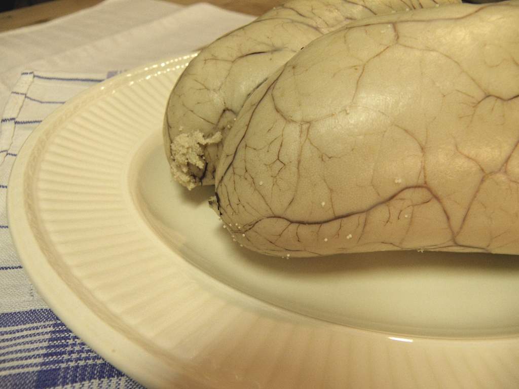 Legg den i det kokende vannet, kok så vidt opp og la rognen trekke på svak varme i 1 – 1,5 time, alt etter tykkelse. Kokebøkene sier kortere koketid, men av erfaring trenger den lenger enn 20-30 minutter.