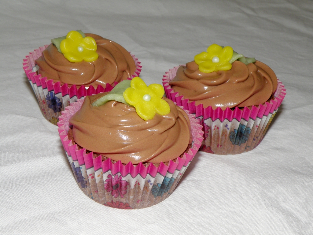 Disse cupcakene/muffinsene har jeg skrevet om tidligere, og oppskriften er hentet hos Kjøkkentjeneste. Denne gangen har jeg laget dem med en annen topping, en sjokoladefrosting som jeg har hentet hos Bakemester Snipp. Ta gjerne en kikk innom disse to flotte bloggene, mye spennende og fristende å finne hos dem.