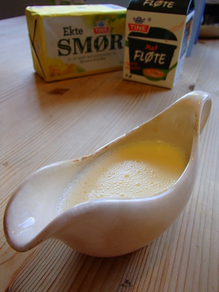 Valget falt på ørret forleden dag til middag. «Åhh, kan m’ikkje ha sandefjordsmør då..?» -spurte poden. Ok, sandefjordsmør skal bli. Omtrent den feteste saus som finnes – etter smeltet smør. Og veldig enkel å lage.
