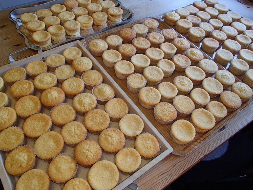 Dagen før bryllupet ble det rene sydenstemningen her, med nesten 30 grader ute og 26 på kjøkkenet mitt. Følgen var at frostingen måtte påføres litt om gangen og cupcakene ble satt raskt inn i kjøleskap. Da jeg var ferdig kom min mann hjem og lurte på hvorfor jeg ikke hadde satt på varmepumpa og brukt den som air-condition… Uh.. Festlig å få slike tips på slutten..