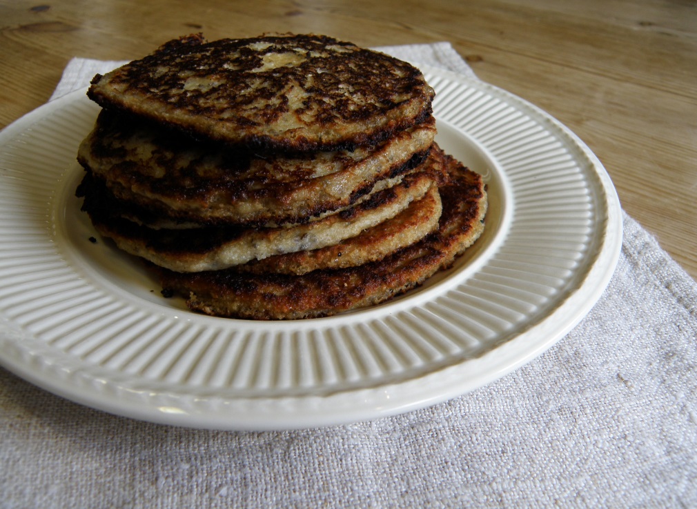 Oppskriften her er egentlig én porsjon, så jeg doblet den til formiddagens kaffekopp. Men de var godt mettende så husbond og jeg spiste bare halvdelen. Og en porsjon fikk jeg 6 lapper av, men det avhenger jo selvsagt av hvor store du vil ha dem.