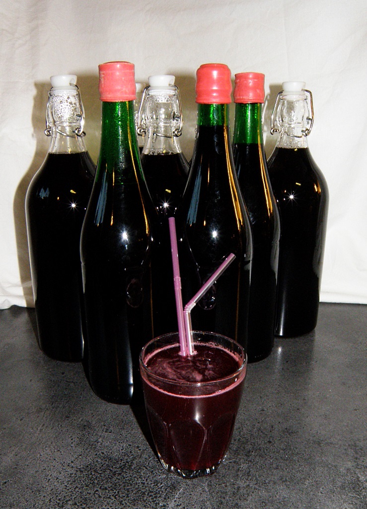 Året har gitt mye bær på mine solbærbusker i år. På den ene busken var bærene så store som små druer. Tre bøtter med bær ble fryst ned med tanke på saft. Ved å fryse bærene før koking, ødelegges noe av pektinet i bærene og man unngår gelé på flaske. Tro meg, det er litt slitsomt å få ut av flasken igjen.
