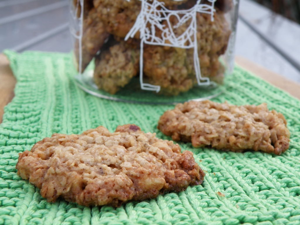 «Er det noe juks i disse?» – spurte sønnen da jeg serverte disse småkakene. Skeptisk med rette, da jeg har det med å prøve ut mer eller mindre vellykkede bakverk. Men jeg kunne betrygge ham med at disse var helt vanlige småkaker, med helt vanlig sukker og helt vanlige ingredienser. Bittelitt sunne med havregryn og peanøtter. Oppskriften er en av mine gamle, sikkert hentet fra et eller annet ukeblad for mange år siden.