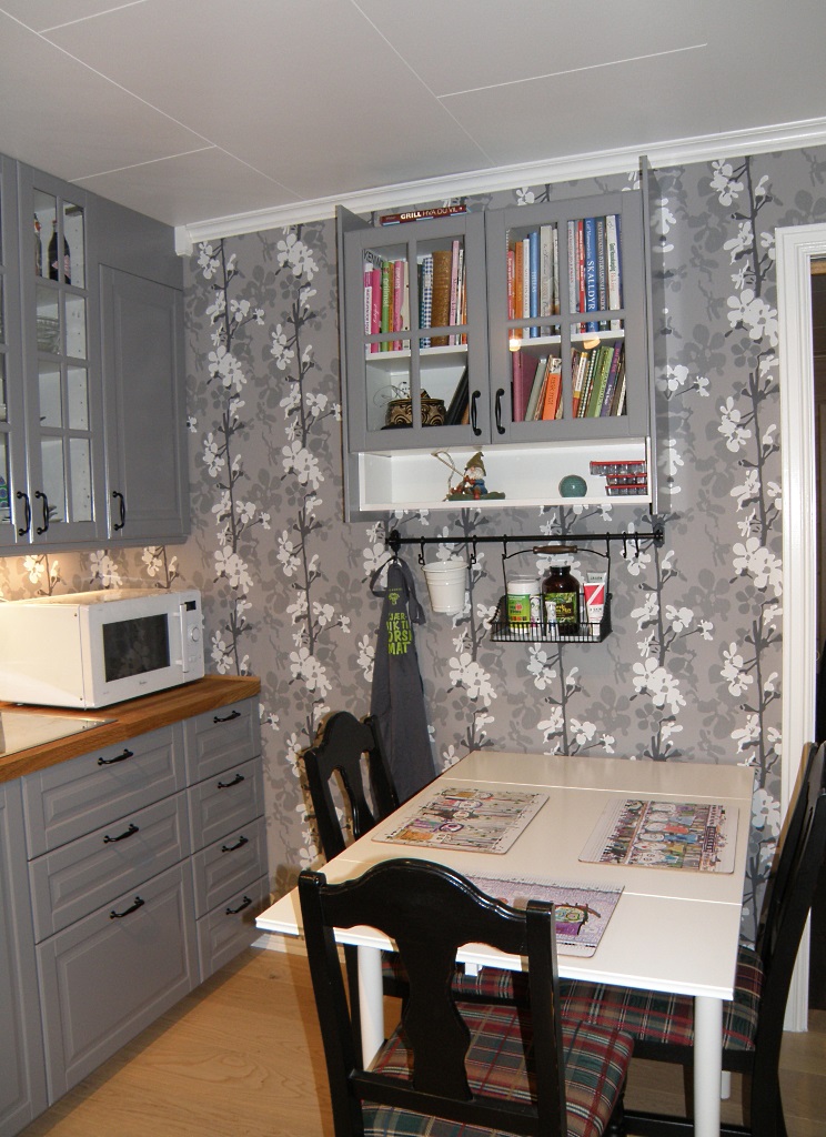 Jeg dro nedover til mannen min da han hadde vært borte i 2 uker, slik fikk vi 2 uker sammen som en slags ferie. Vel hjemme gjensto enda noen småting på kjøkkenet, et bokskap til alle kokebøkene mine, lister langs benkeplaten, glass bak kran og komfyr og ellers litt småting. Men nå koser vi oss på kjøkkenet. Bare det å kunne stå to stykker og jobbe ved benken – og attpåtil ha en duk mellom med litt stash – fantastisk. Se bildene og la deg gjerne inspirere.