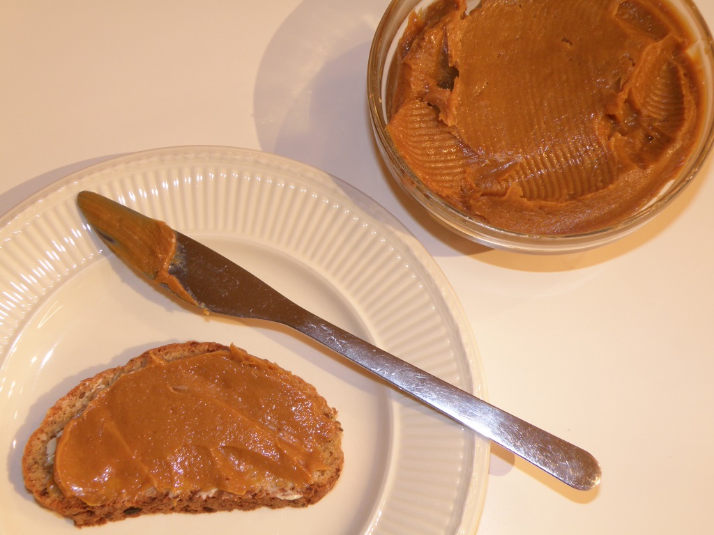 Mannen fikk sin sparebøsse og karamellmassen ble fortrengt. Men jeg syns den smakte godt, så jeg hadde den oppi en skål slik at den kunne brukes som pålegg.